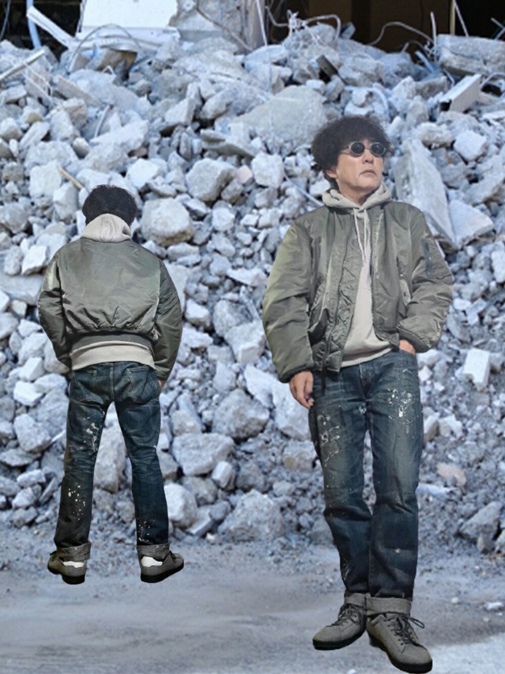 生まれて初めてのGUコーデです。靴までGUです。GUのパーカーを買いました。GUでは一番ジャストフィットのベーシックなタイプのLサイズを着ています。ユニクロのオーバーサイズのSより小さい感じですね。でも、インナー使いはこのくらいのサイズ感の方がアウターからはみ出さなくていい感じです。パーカーと靴にグレーを使った現場作業員風ストリートコーデを目指しました。