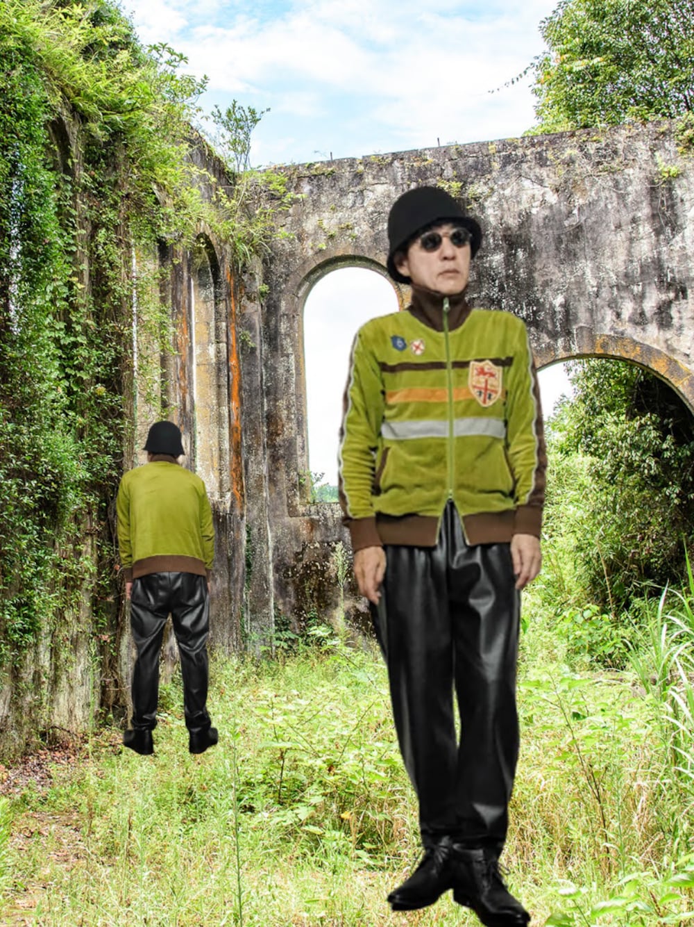 ビリオネアボーイズクラブのウールフェルトのバケットハットです。せっかくのBBCなので90年代ストリートなベロアの古着のジャージを合わせてみました。下は艶々黒でシュッとした雰囲気にしてみました。