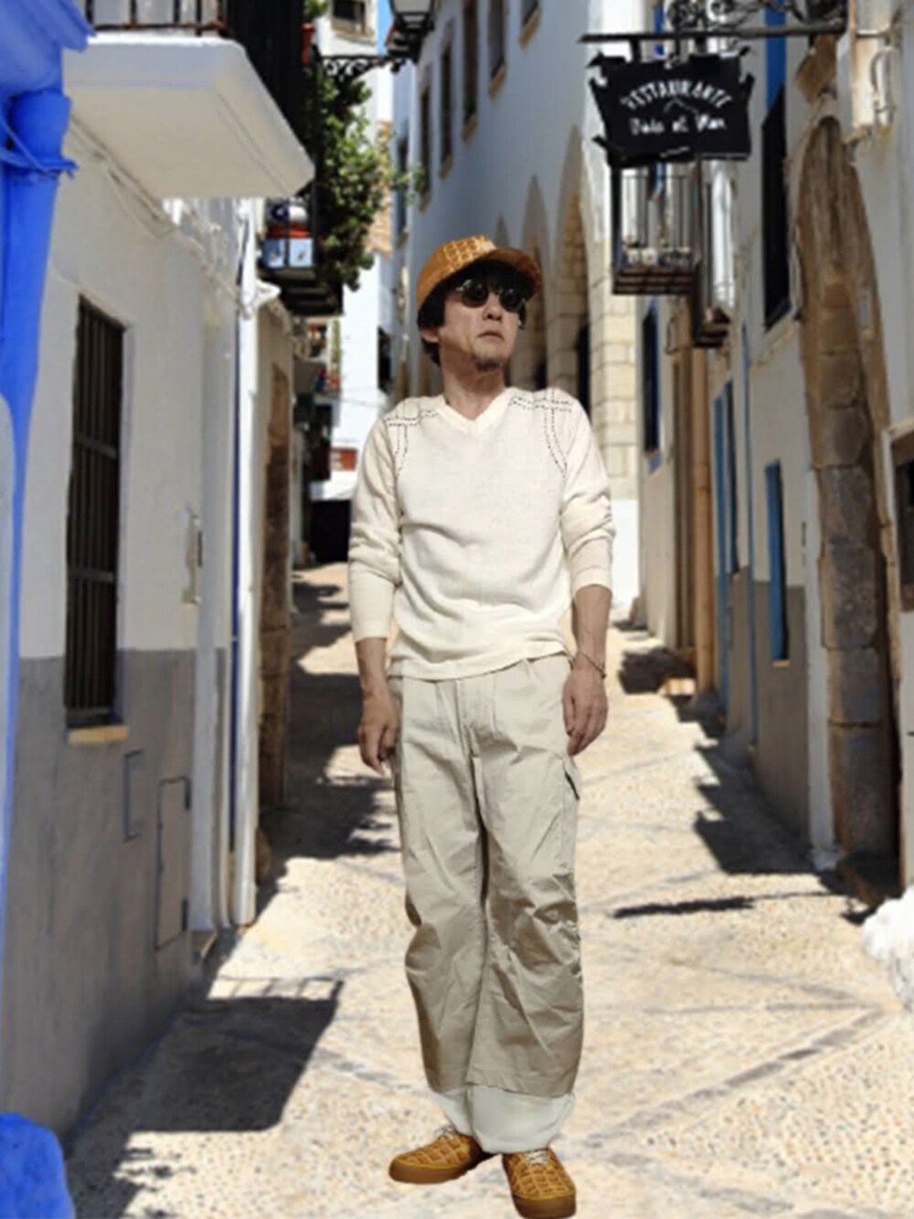 アイスクリームのスニーカーとキャップをお揃いのワッフル柄で合わせました。裏原時代にキメキメと呼ばれたスタイルですが、今日は白っぽい色を基調にしたきれいめなコーデに落とし込んでみました。上品なストリートコーデです。