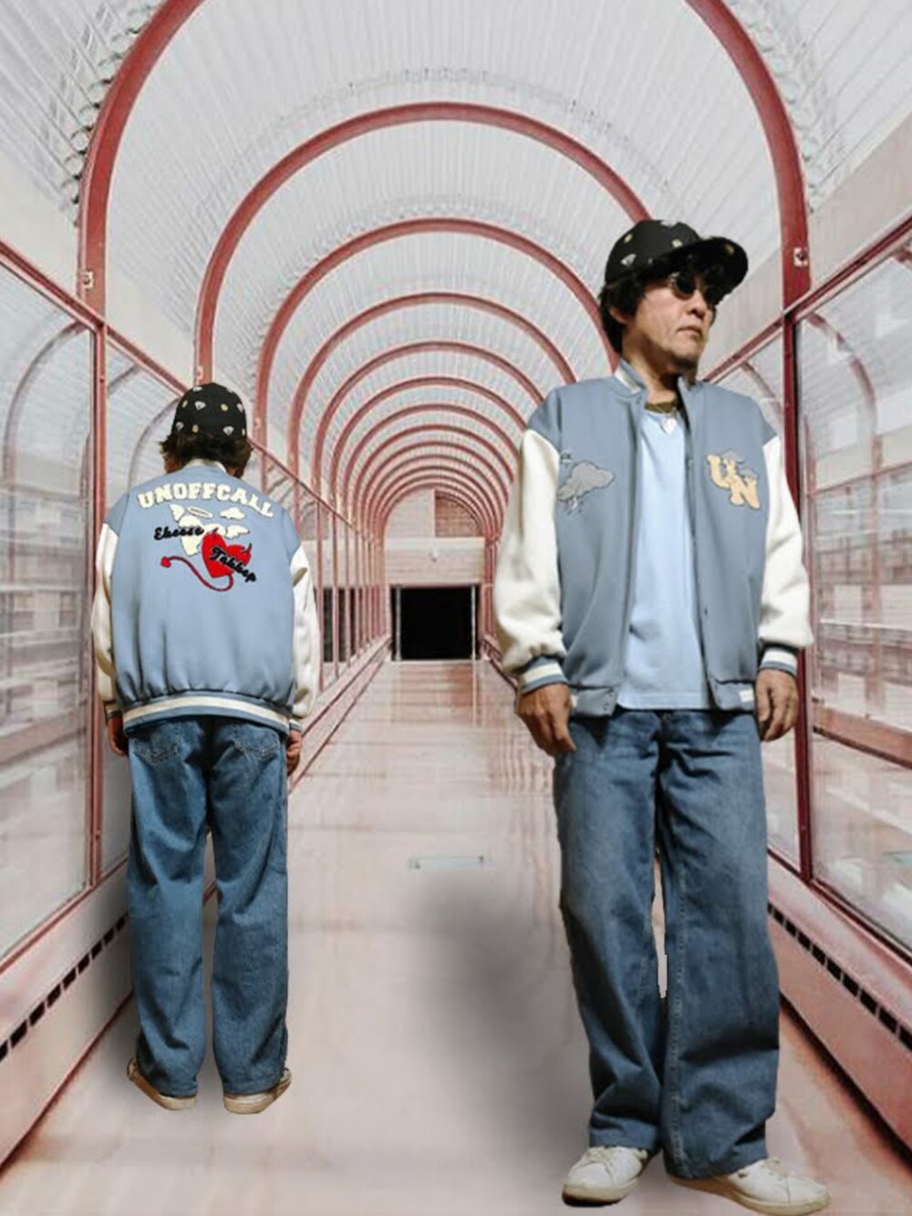 今年の秋冬はスタジャンを積極的に着たいなと思っています。これは去年ZOZOで買ったスタジャンです。色とワッペンのデザインが絶妙でお気に入りです。サックスブルーのワントーンコーデでまとめてみました。