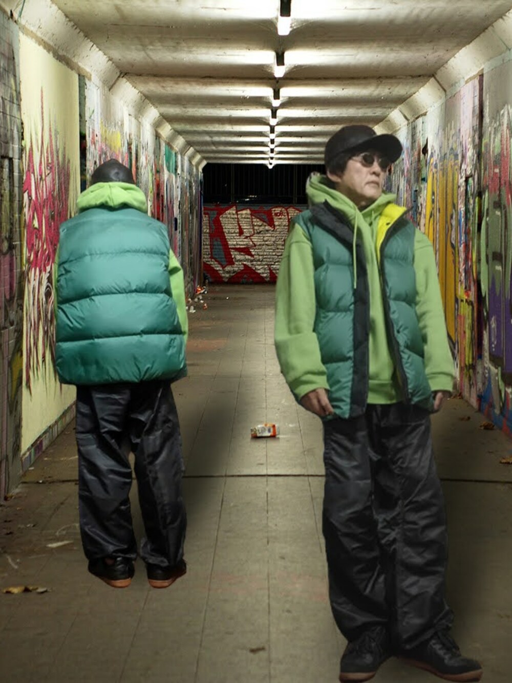 UNIQLO MARNI 2022AWのダウンベストを使った2つめのコーデです。このベストを見た瞬間に一番最初に思い浮かんだコーデがこれでしてアップルグリーン、イエロー、グリーンの色使いが絶妙と思っています。