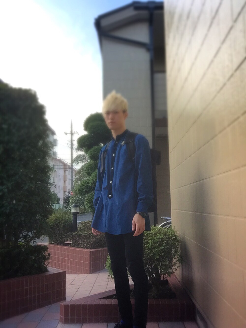 クボチがはやく投稿しろとゆうので 言うことを聞こうと思います!笑 またまた青のコーディネートになりますが こんかいは BLACK&BLUEの インディゴネルロングシャツ! ワイドパンツなど太めのパンツとの相性が◎ですがスキニーとでも相性はよいかと!笑 まぁ僕自身がこーゆう上はゆったりしてて 下はキッチリしてるコーデがすきなだけなんですけどね!笑