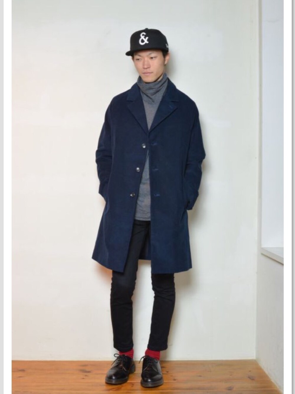 最近すごく寒くなってきましたね〜 体調には気をつけねば( ̄▽ ̄) てことでコートコーデ☆ チェスターコートでインナーには タートルネックをもってくることで ちょっと大人な雰囲気にw 色合い的にもコートのnavyとソックスのレッドが いい感じにバランスとれてるので おすすめですね!(^^)