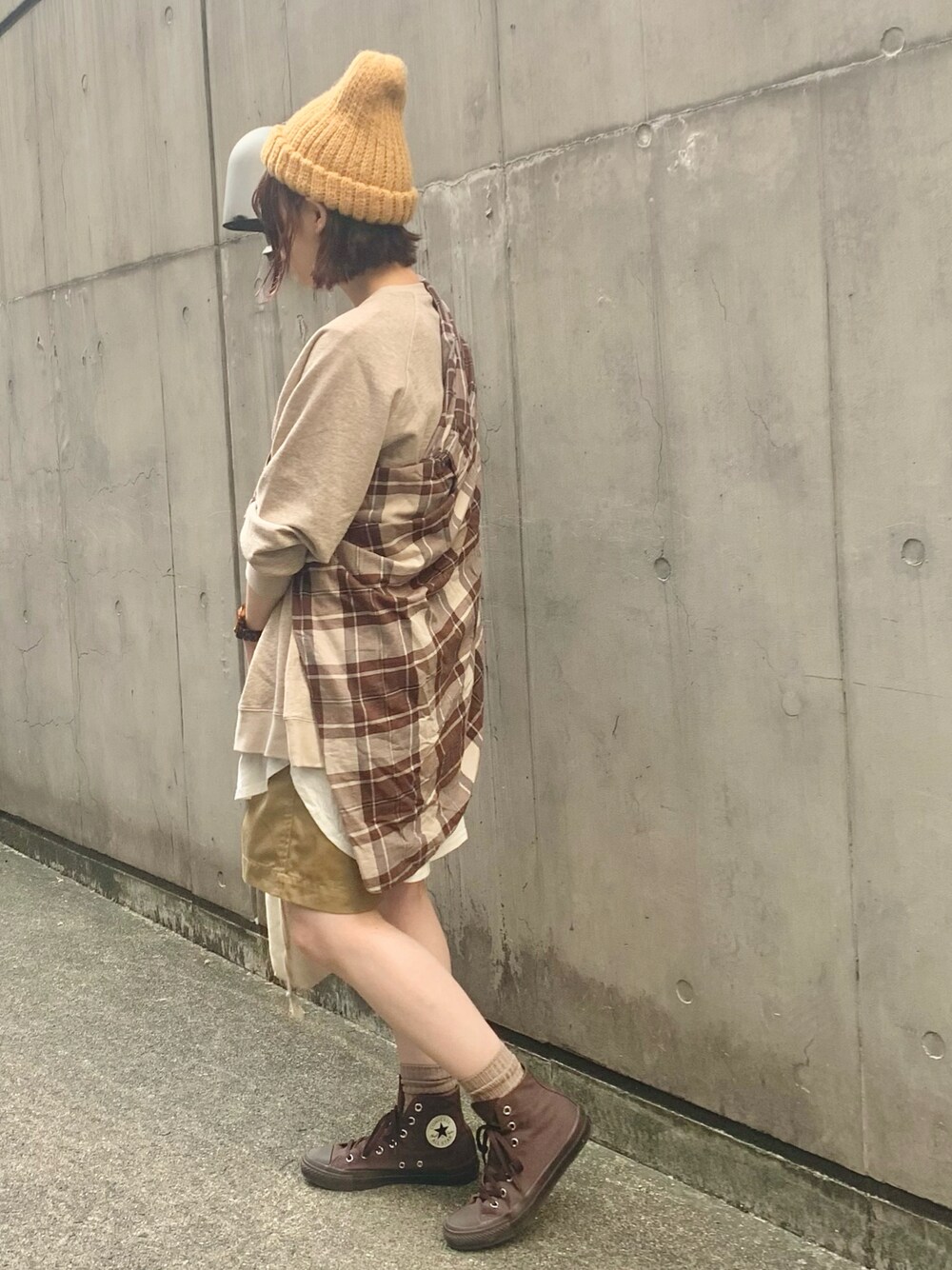 おめぐのニットキャップ/ビーニー「リブニットデザインニット帽 / ニットキャップ / ユニセックスアイテム」を使ったコーディネート