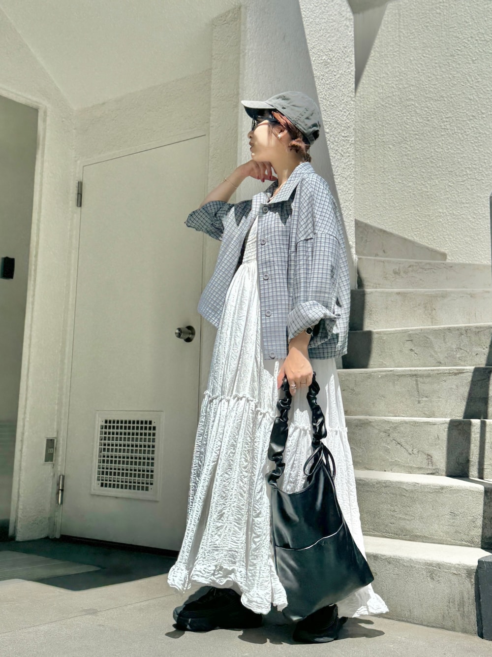 ちょっと涼しかったので 買ったばかりのチェックのシャツを 着てみた日。 いつもブラウンを選びがちだから ブルーは新鮮!🥺✨ ブルーグレーぽいくすんだカラーが 夏ワンピも秋っぽく見せてくれる気がします🐭