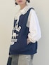 ありそうでないカレッジロゴのベストは まさかのリバーシブル! この日、風が強くて襟が乱れてる🙃