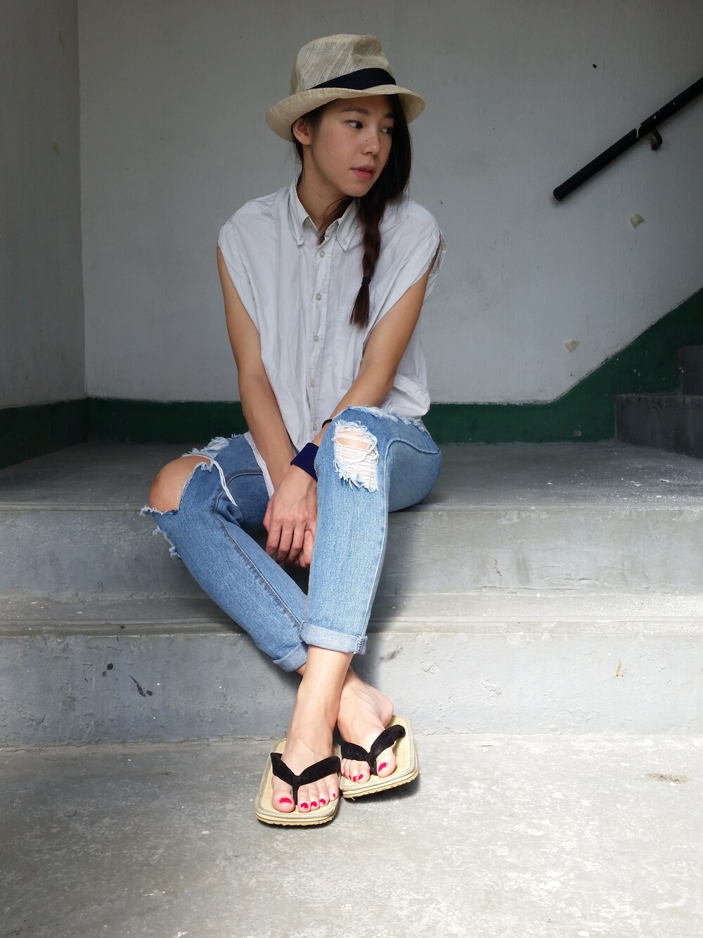Shirts : MMM x H&M Jeans : Topshop Sandle: no brand Hat : Beans
