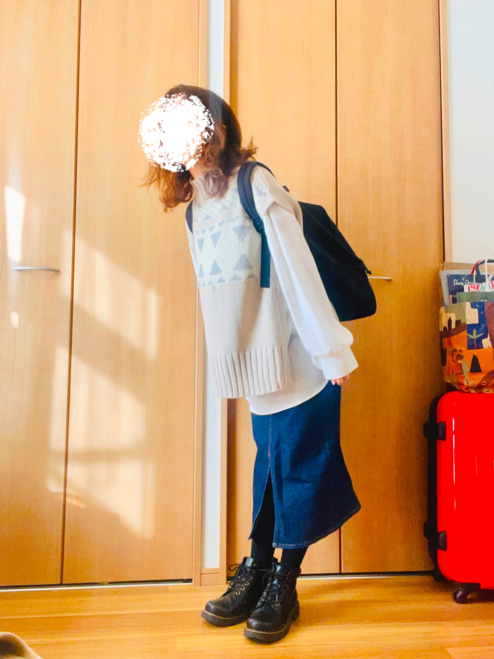 引っ越しをしましてなかなか写真を撮れる良い場所を見つけられなかったのですが、撮る場所決めた! 憧れの横が開いてる流行りのベストを買いました。かわいい。。