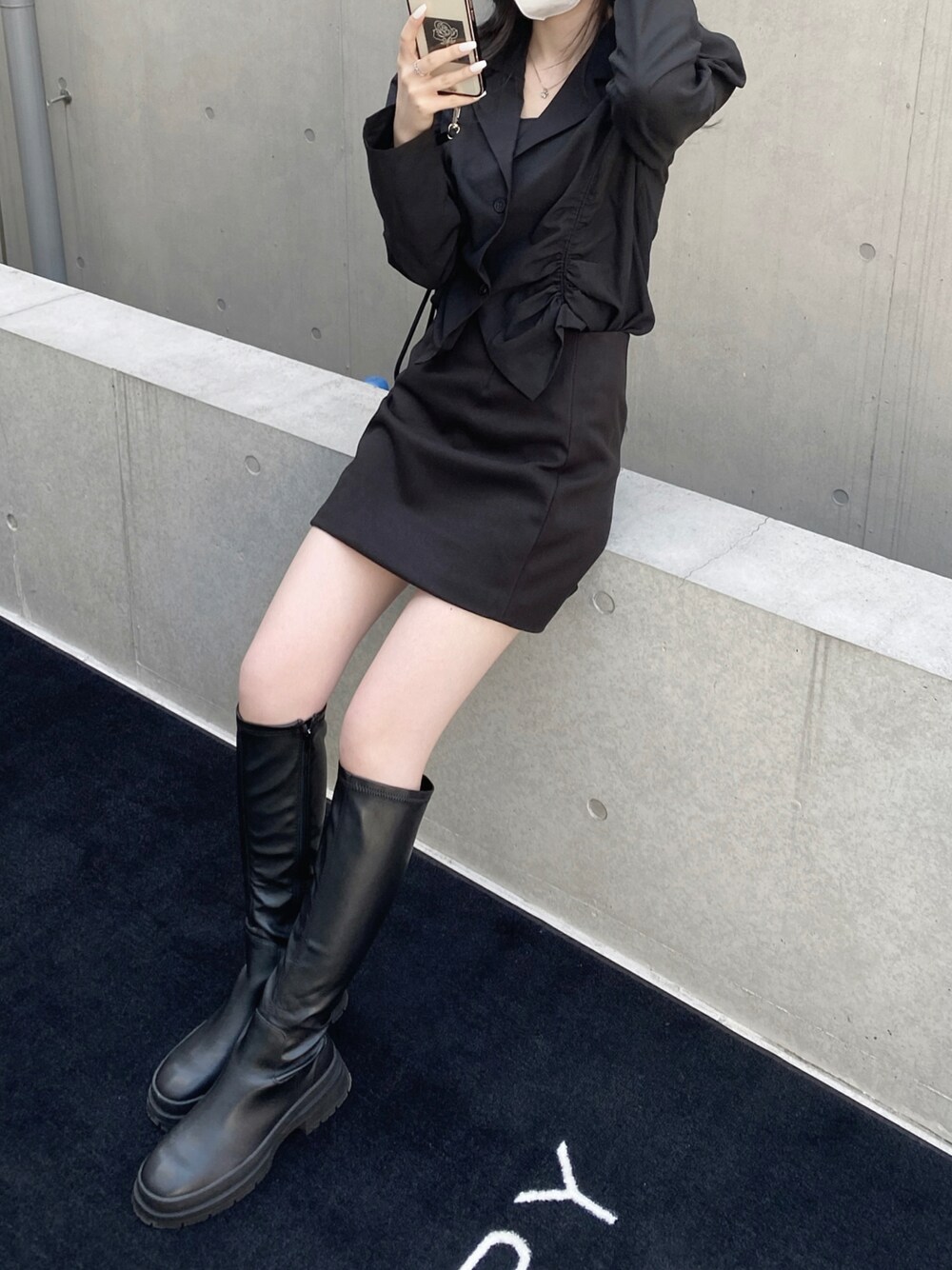 🖤 ー 韓国ファッション ー ◽︎オールブラックで大人っぽく ◽︎ロングブーツとミニスカートで韓国感up モノトーンがお好きな方にはぜひ 真似してほしいコーデです🫶🏿
