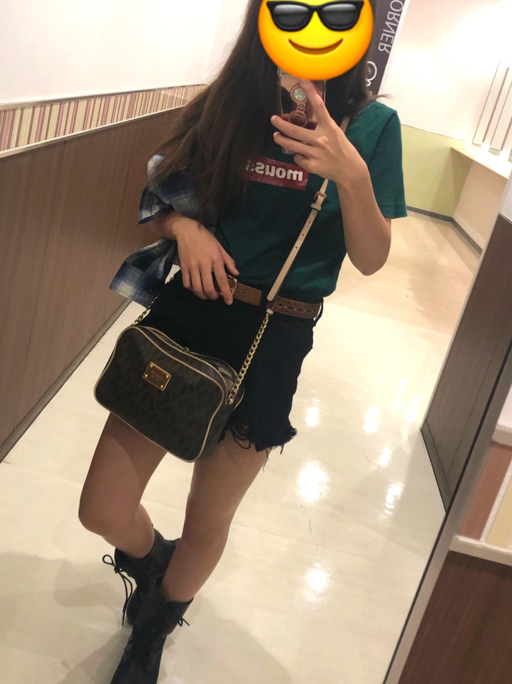 おひとり様映画day チェックシャツ H&M ショートブーツ 楽天