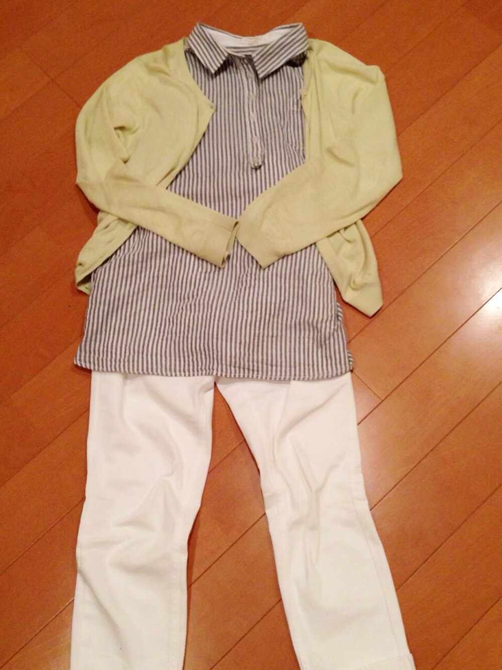 お仕事コーデその2✧* ストライプシャツはサイズ大きめなのでゆるっと着られます(﹡ˆᴗˆ﹡)