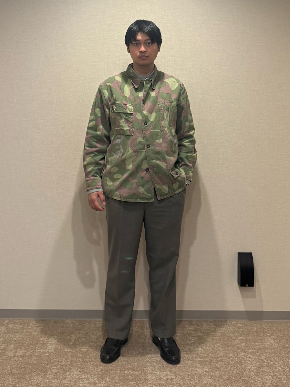 ---------ーー-----ーーーー jacket→不明 #used #militaly poloshirts→L #poloralphlauren pants→36×30 used shoes→27.5 kenford socks 無印良品 . -------------------- . ✔️Selected Item✔️ . フィンランド軍 M-62ジャケット . 60年代、独特のカモ柄で実はリバーシブル。裏面は白で雪上で着るみたいです、 . 🐢 ミリタリージャケットの下にはシャツ入れてもいいんですが、ロングポロにすることでこなれ感を演出しました。