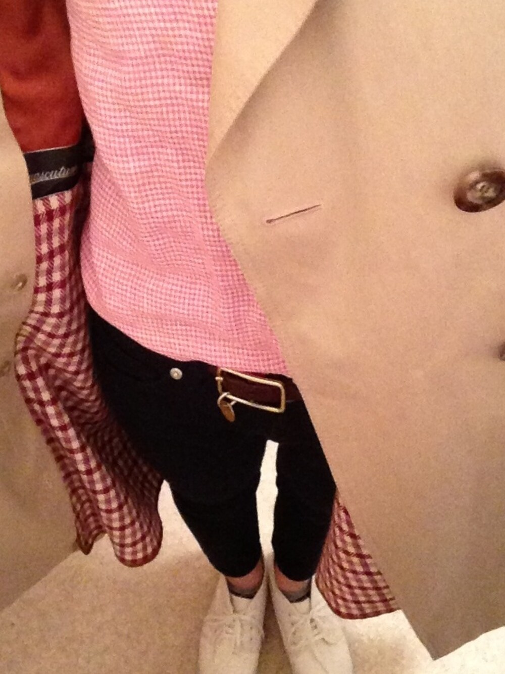 トレンチコート アクアスキュータム リネンシャツ UNIQLO パンツ gu シューズ vans 春らしくピンクで。