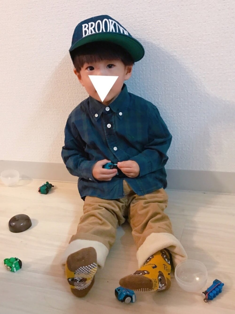 すっかり寒くなったな~⛄ 冬服がほとんどサイズアウトで困ってる😣 コーデュロイパンツとポロお気に入り💕 靴下はダサカワで🐻🐻🐻(笑) トーマスが散らかっております🚇💦(笑)