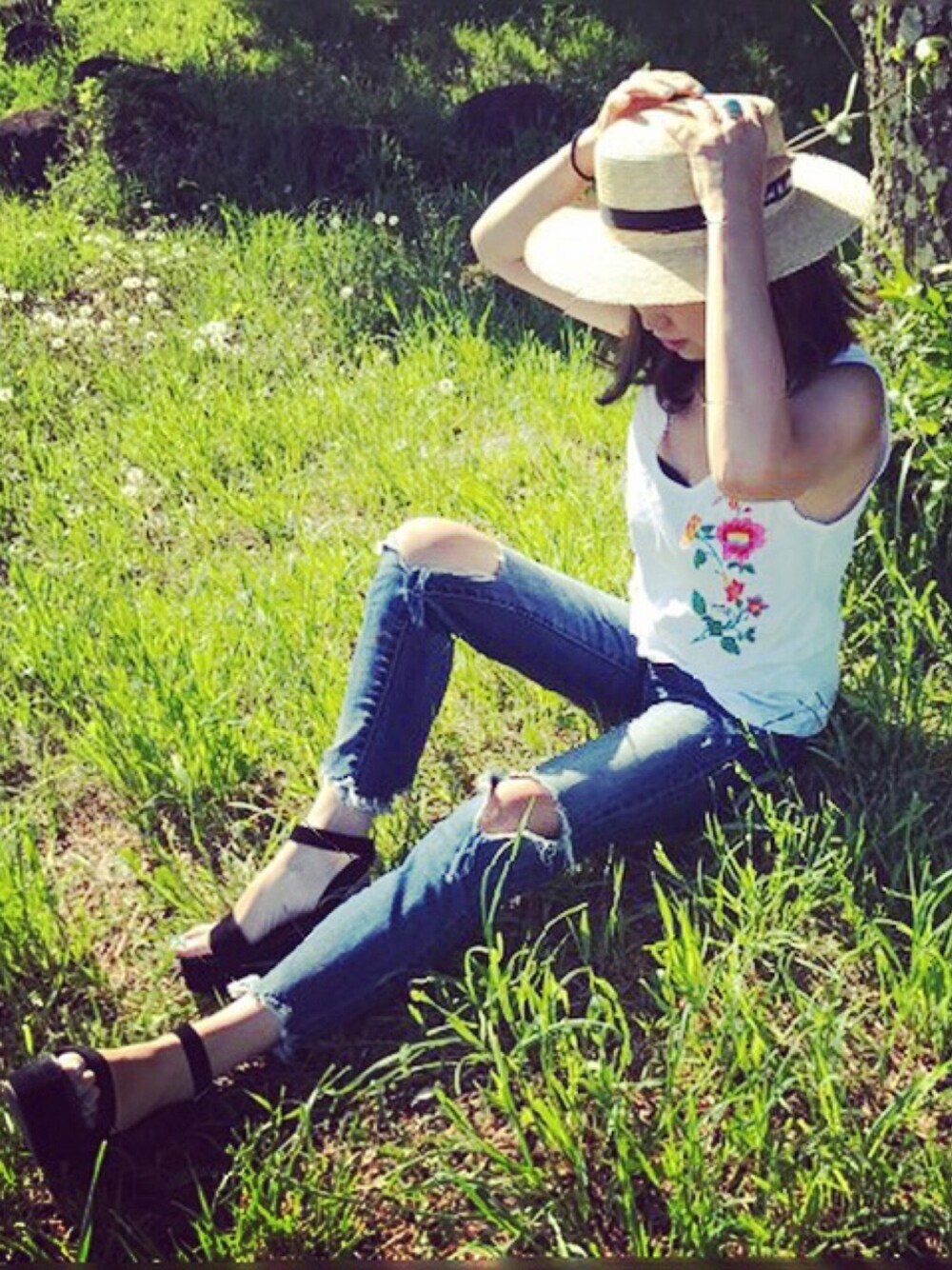 zaraのタンクはプチプラ♡ だけど刺繍でかわいい❤️ instagram @maaaaa928もよろしく💓