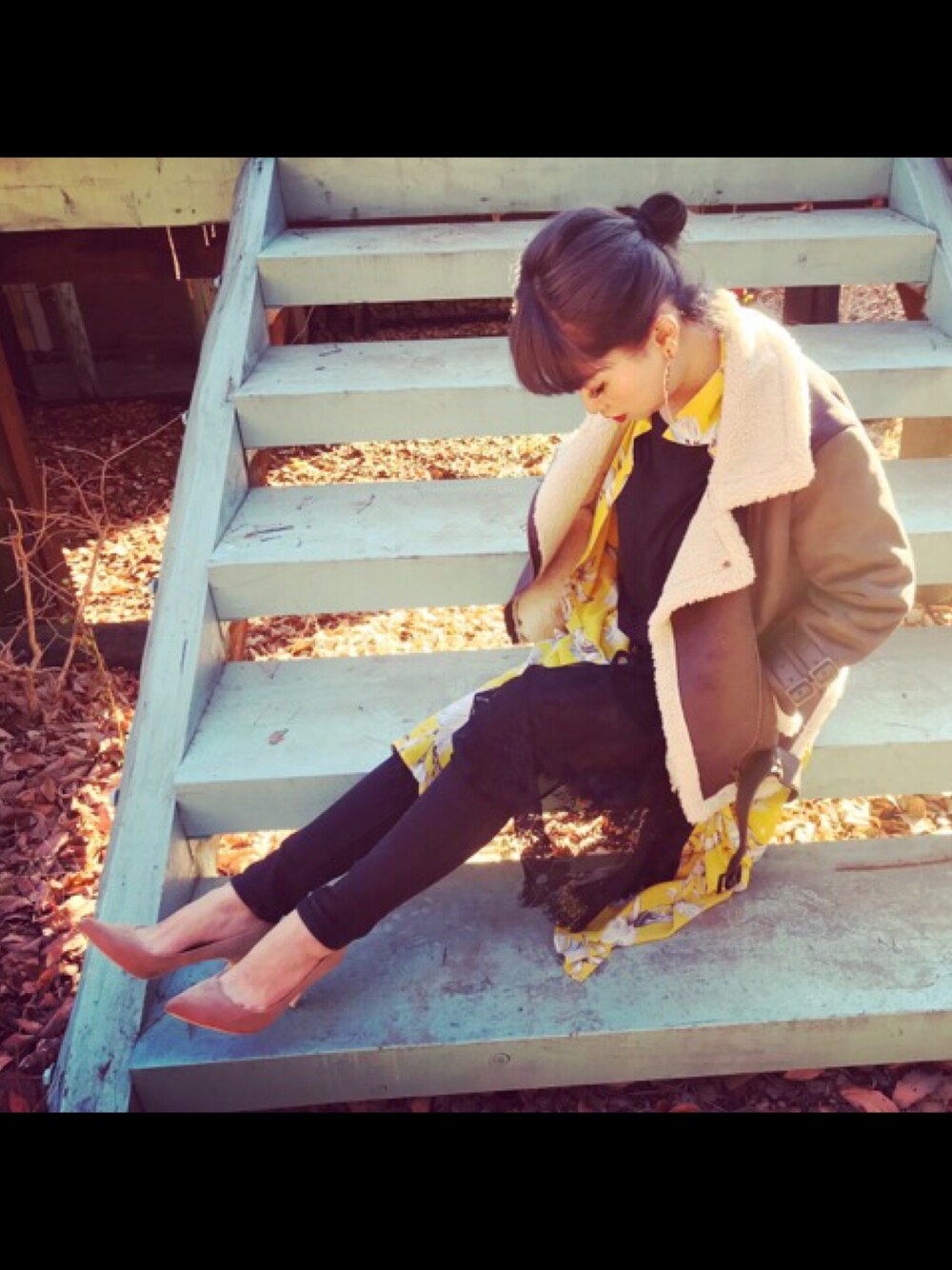 寒いから重ね着重ね着❄️ これで5枚来てる😂薄手のものを…w オシャレは寒いもの😜