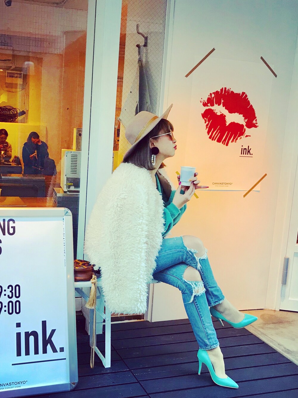 かわいいCAFEへ☕️💋 コーデはアウター脱いだら春コーデ💚 寒かったぁ😭