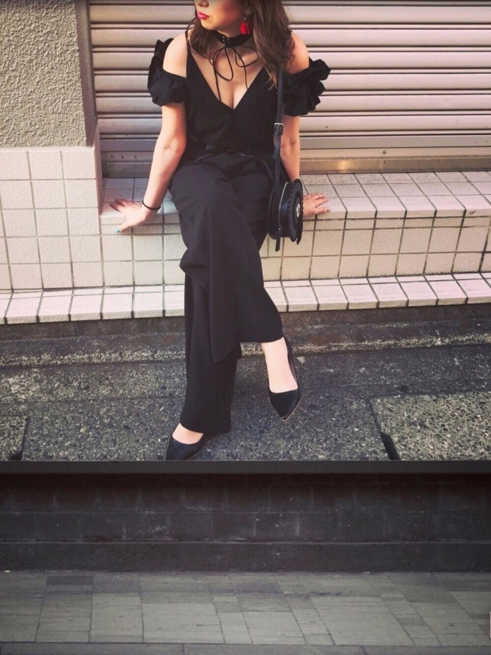 昨日のコーデ💓 ドレスコードがBlackだったので みんなでBlackコーデで行ってきました🖤 楽しかった◟̆◞̆
