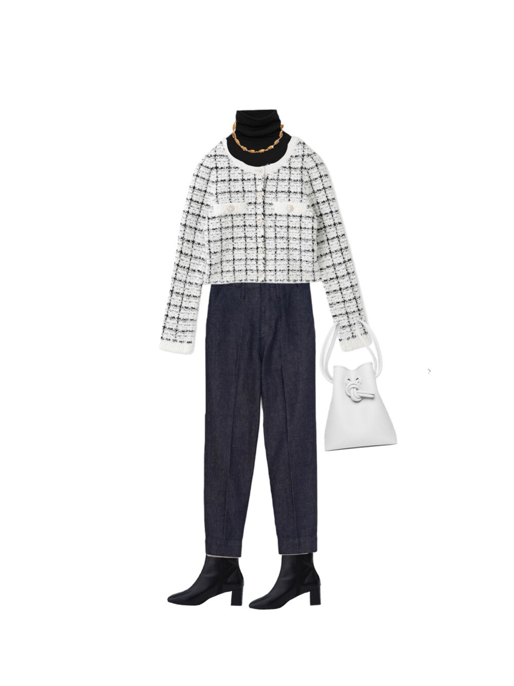【転載禁止】m3nのニット/セーター「ツイードニットショートカーディガン」を使ったコーディネート