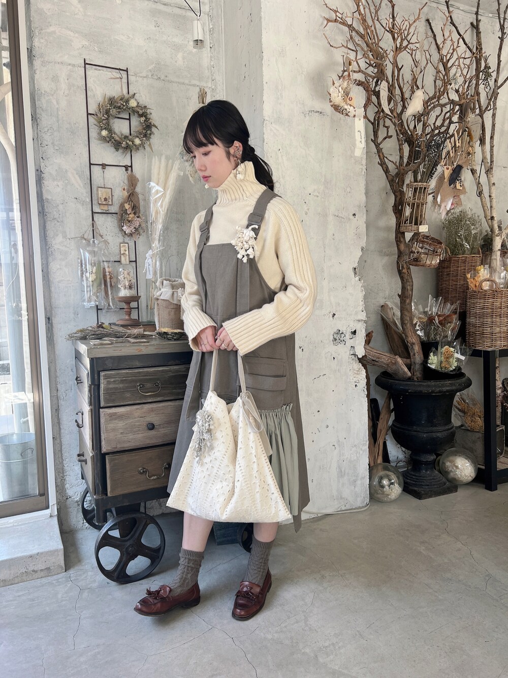 m.soeurのトートバッグ「刺繍レースのトートバッグ*コサージュ付き」を使ったコーディネート