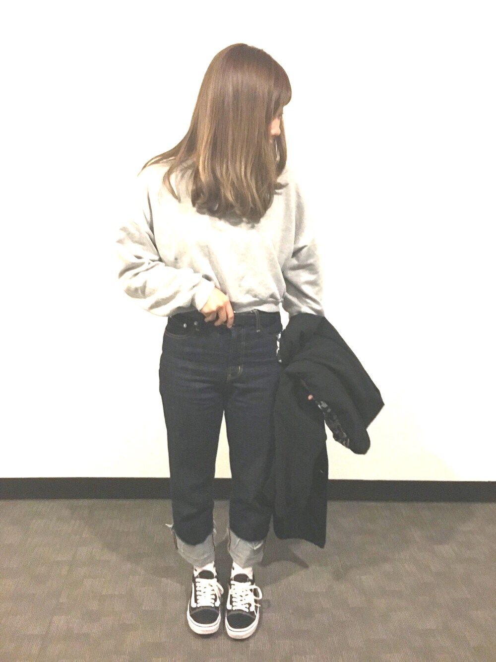 トップスのスウェットはショート丈になっていて形がすごく可愛いです😊💞 すごくお気に入り! ちなみに白黒のVANSが一番のお気に入り✌️💓