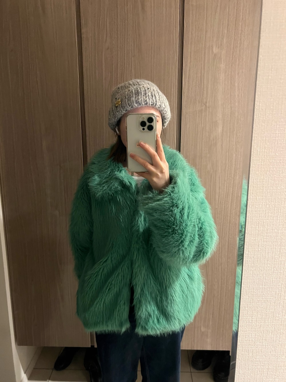 mspyのその他アウター「UGG@mos 裏地ロゴ フェイクファーコート / アグ ウラジロゴ フェイクファーコート」を使ったコーディネート