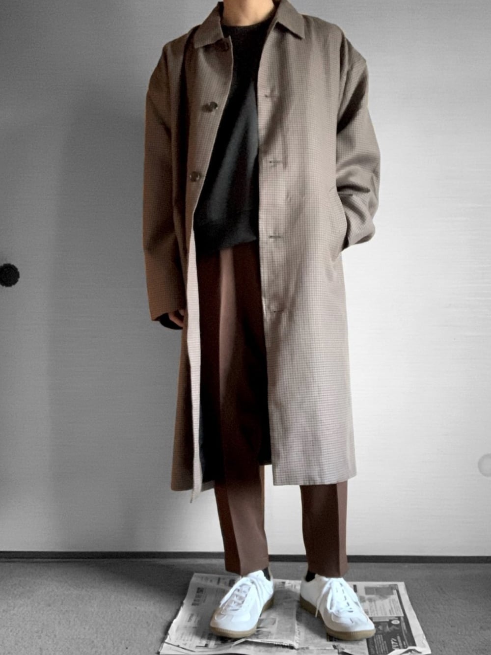 上下ブラウンにグレーで大人らしさを出し白スニーカーで柔らかくまとめました! [追記] かっこ良すぎるんだけどおお