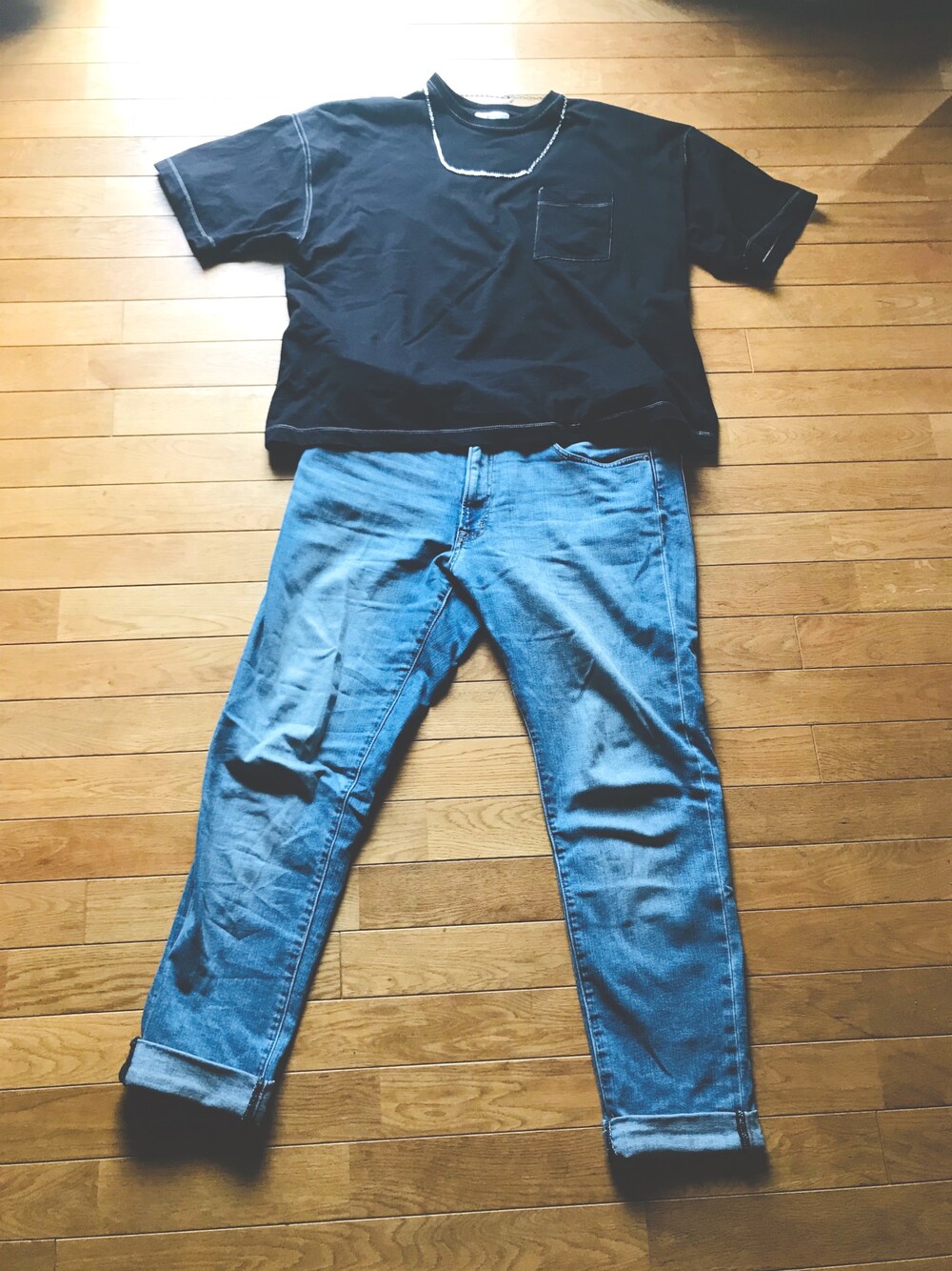 腕時計入れてないだけで付けてます このコーデで、タックインしても違和感なく着こなせるのでとてもオススメです😁 靴は革靴がいいかと思います。