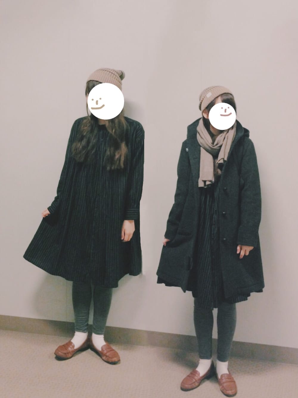 しまとちゃいろ よこしまニット帽 たてしまワンピース ちゃいろぼうし ちゃいろマフラー ちゃいろローファー