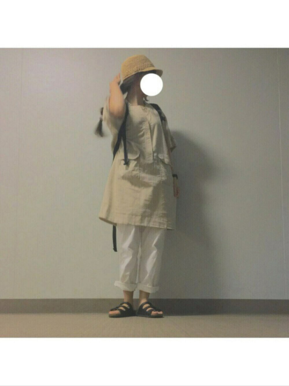 ワントーーーンコーディネーーート 割烹着みたいなリネンとおにゅーのネックレス