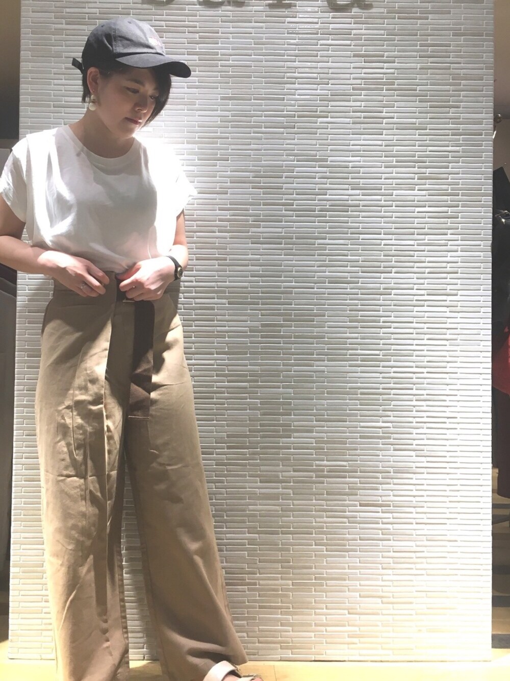 こんにちは😃 今日は新作のラップデザインのパンツをメインに白のTシャツと黒のキャップで合わせました! 白いTシャツは肩にタックが入っていて、袖もTシャツくらいあるので安心して着れます🙆♀️ いつもご覧いただきありがとうございます😊