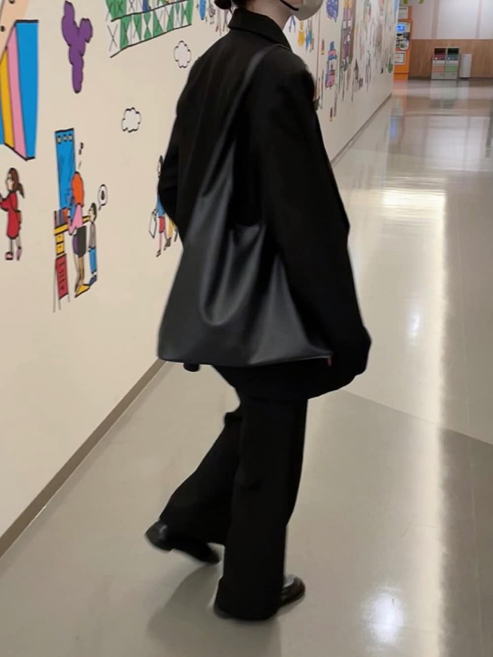 🎬🍿 映画を観に行く日のちょっとしたお出かけ オールブラックでまとめたシックなコーデ🖤 スラックス×ローファーで、きれいめカジュアルに。