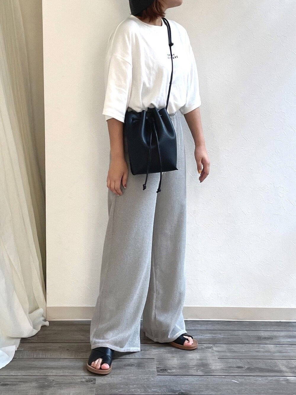 シンプルコーデだけどメッシュパンツでいつもと違った雰囲気に* ライトグレーが絶妙な色味で可愛い!