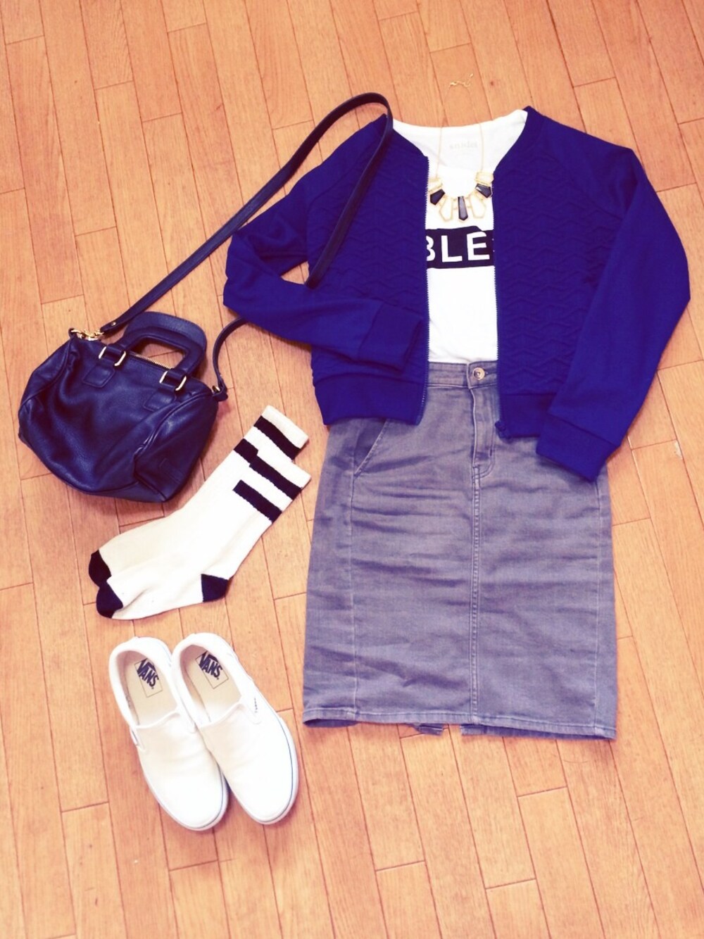 ブルゾン:GU トップス:snidel スカート:GU バッグ:ZARA スニーカー:VANS