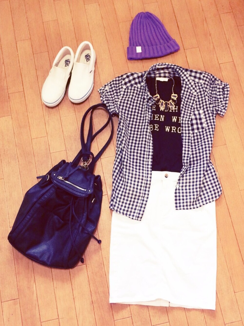 シャツ:GU Tシャツ:Forever21 スカート:GU ネックレス:GU バッグ:JEANASIS スニーカー:VANS カジュアルにまとめました♡ 白いスカートかなり使える♡