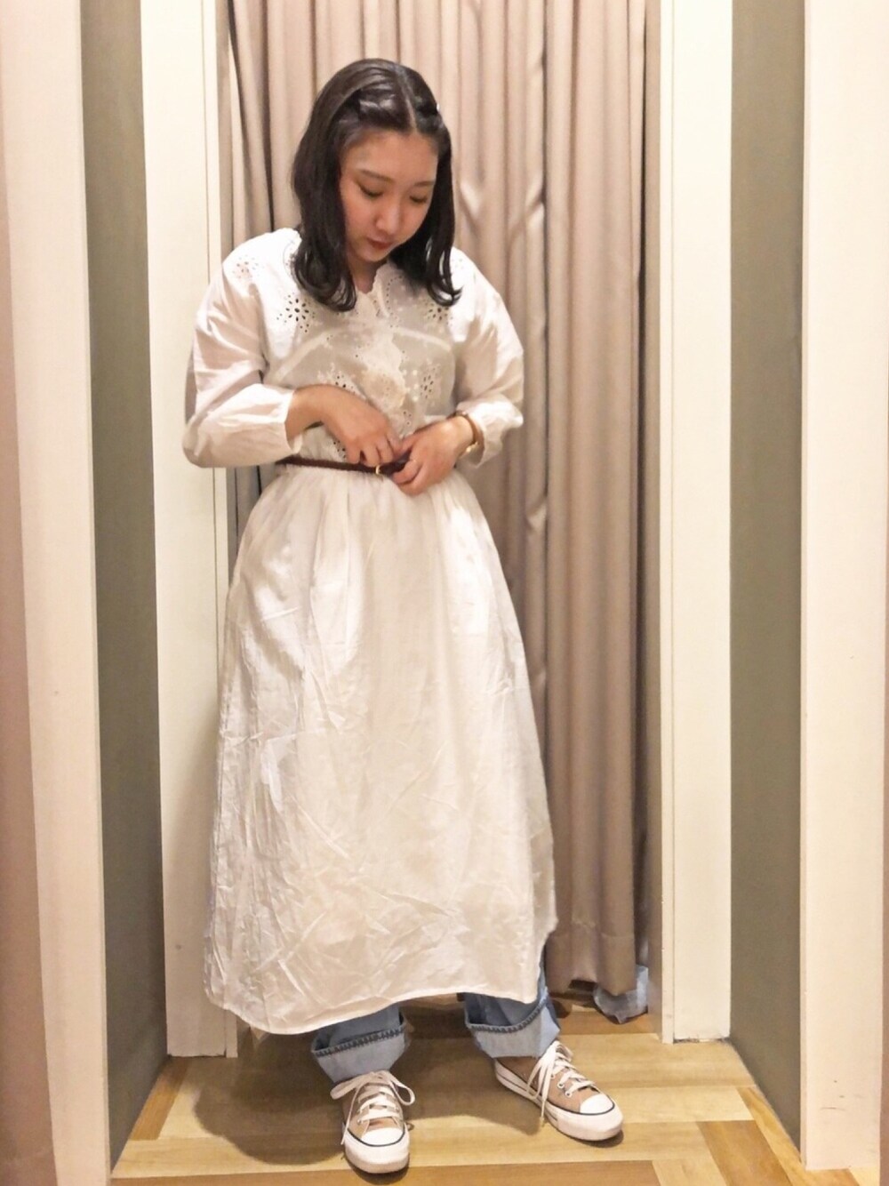 MISAKlのワンピース「カットワ-ク刺繍9分丈ワンピ-ス」を使ったコーディネート