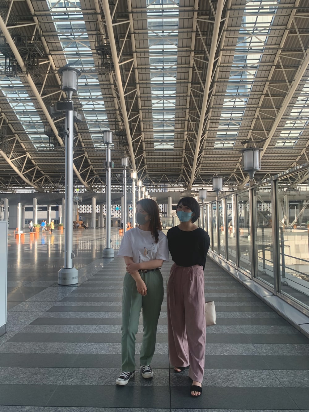 とある駅でパシャリ📸✨ セレクトモカのTシャツデザインに 一目惚れ🤍🤍 UNIQLOのカラーパンツと合わせて🌈