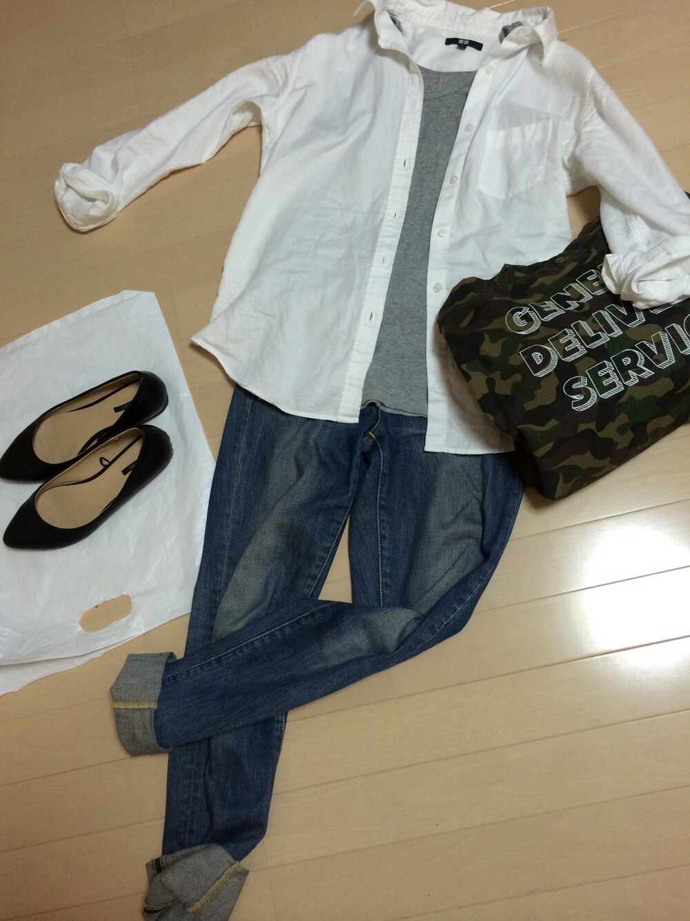 はやうまれのシャツ/ブラウス「白シャツL」を使ったコーディネート