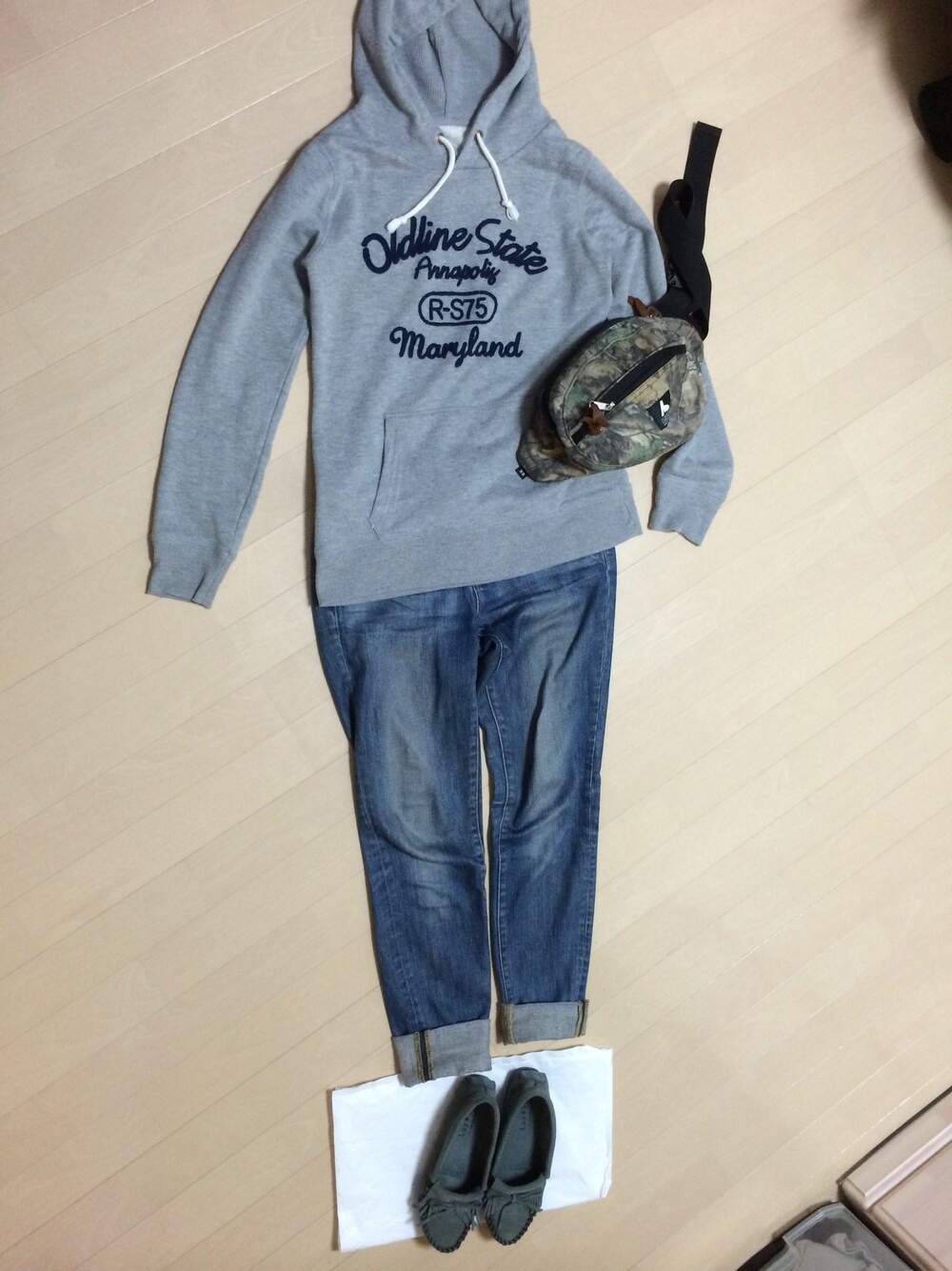 はやうまれのスウェット「フード付きスウェット」を使ったコーディネート