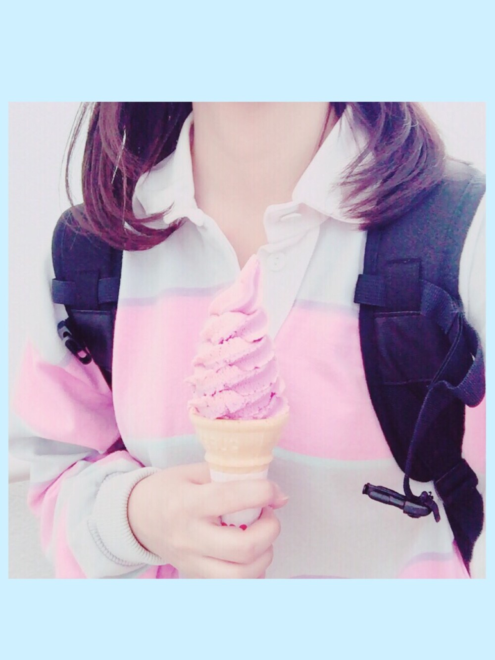 4泊5日の修学旅行から帰りました✔️ これは3日目の。 古着屋さんで一目惚れしたキャンディーカラーのラガーシャツ🍦💙💜💗