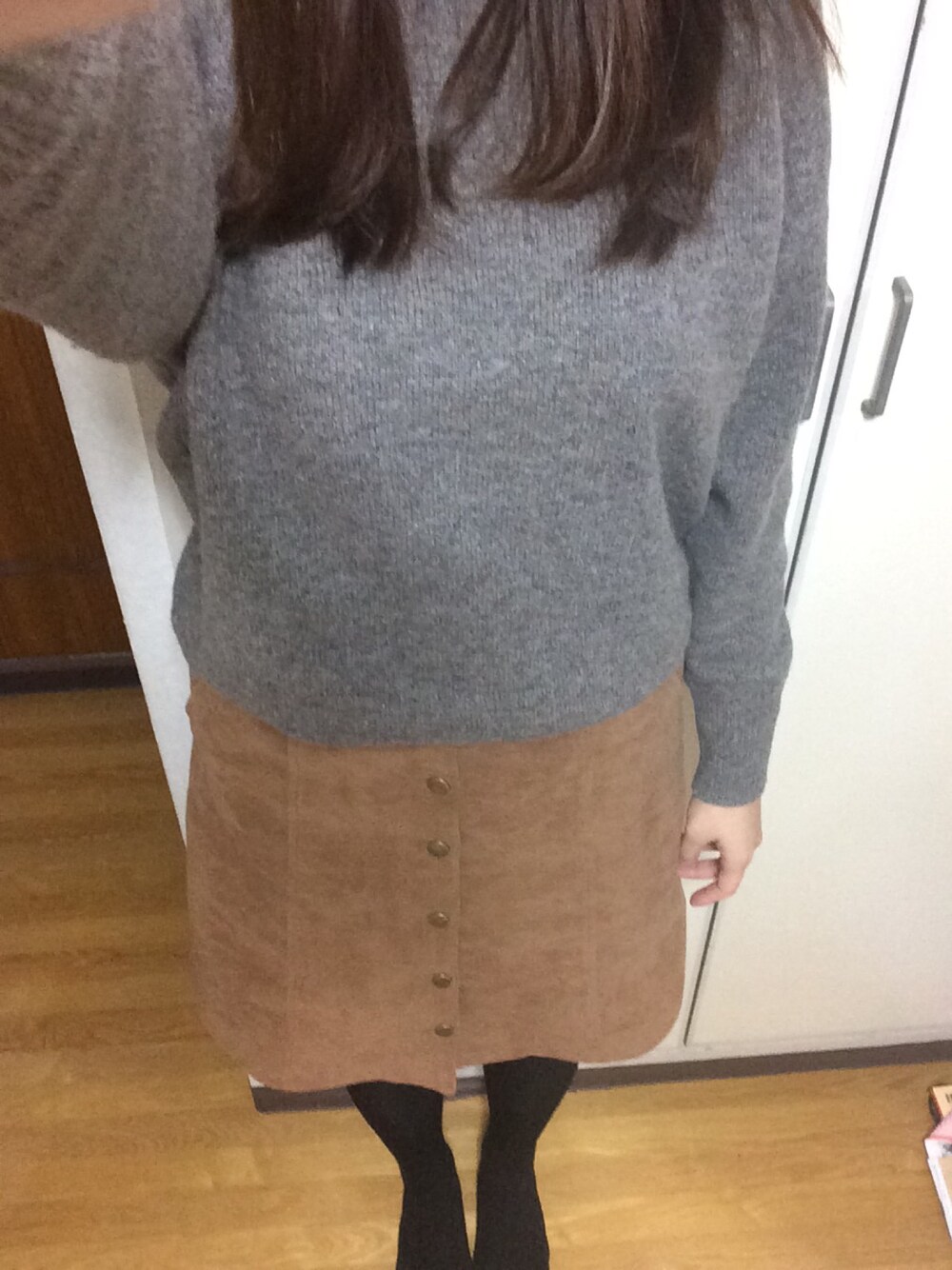 昨日のコーディネート。 部屋で撮ったので靴も鞄もないけど。笑 皆さん書いてるけど、UNIQLOのこのニット、本当に良い\( ˆoˆ )/ 私は形よりも、グレーみたいなブラウンみたいなこの色に惹かれました(*˘︶˘*) 本当に可愛いー♡