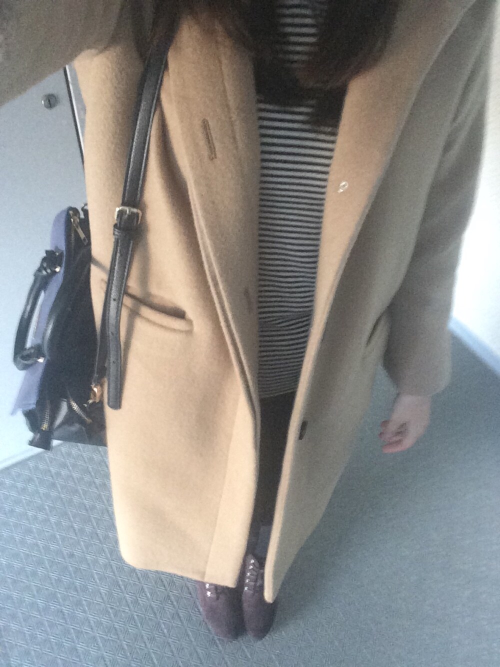スカートは黒のフレアスカート(*^^*) 全然見えてないけど(笑) アウトレットで買ったコート、あったかい\( ˆoˆ )/ 別のとすごく迷ったけど、これにしてよかった♪ ネイビーのダッフルか、ピンクベージュみたいな色のノーカラーコートが欲しい(*^^*)