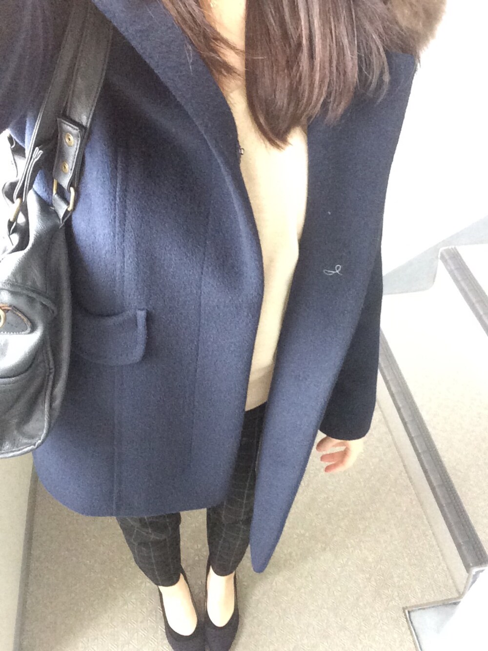 出勤コーディネートです(*^^*) 久しぶりにパンプス履いてみた! ニットはGUです。 初めてVネック買ってみたけど、使えそうな予感♡