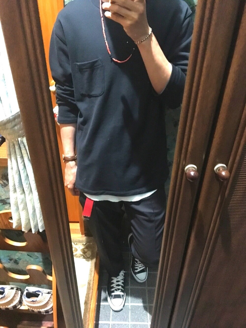 モノトーンに差し色で赤のビーズとガチャベルトつけてみました♪