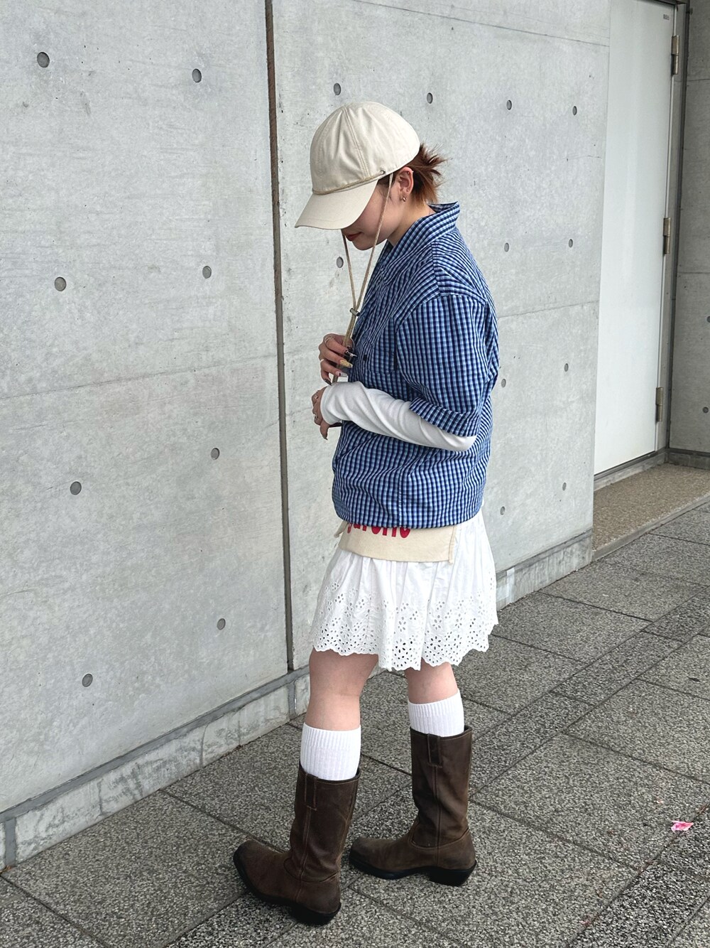 mahhii(OVERRIDE東京ソラマチ)のキャップ「OVERRIDE C/N CANVAS CORD CAP / オーバーライド」を使ったコーディネート