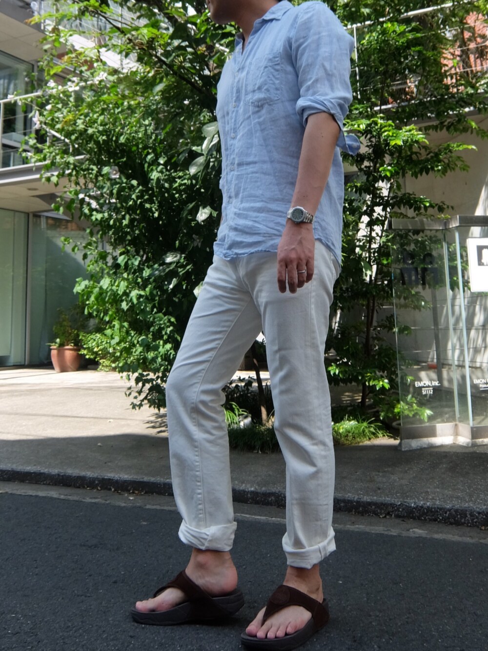 暑い〜(*`ロ´ノ)ノ 今日はショッピングなので、クーラー対策で上下選びました。 外歩くなら半袖短パンしか無理ですね。皆様、熱中症にお気をつけください。 こういう日には麻のシャツが重宝しますね。クーラーには肌を守って、外では涼し気、いいですね( *'w')b