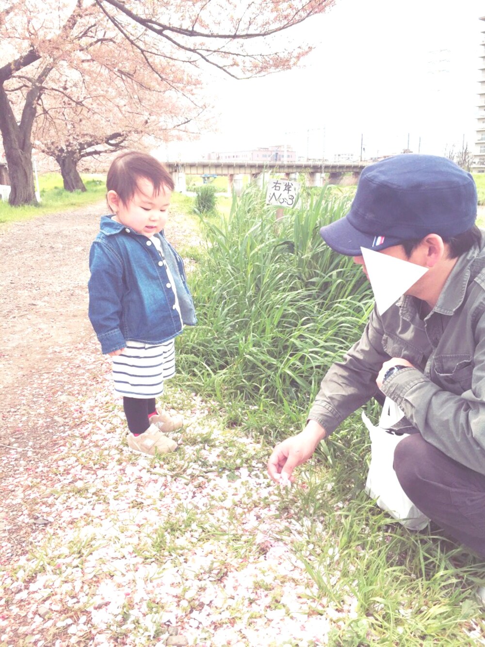 お花見してきました。 桜ももう終わりですね〜🌸 ほぼ桜の絨毯。笑 でも天気よくて暖かかったのでお散歩日和でお花が大好きなほのさん大満足😁✨ 大満足過ぎて帰りはまだ遊びたいと大騒ぎでした😅 shirt→babygap T-shirt→handmaid pants→babygap