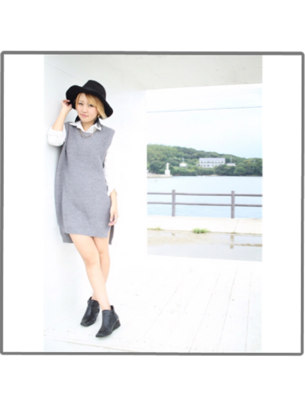 シャツにニットワンピースを合わせた デート服にぴったり♡
