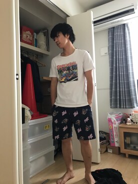「UNIQLO(ユニクロ)のアイテム(Tシャツ/カットソー、ホワイト系)」を使った、松田遼平さん(メンズ)の夏コーディネート