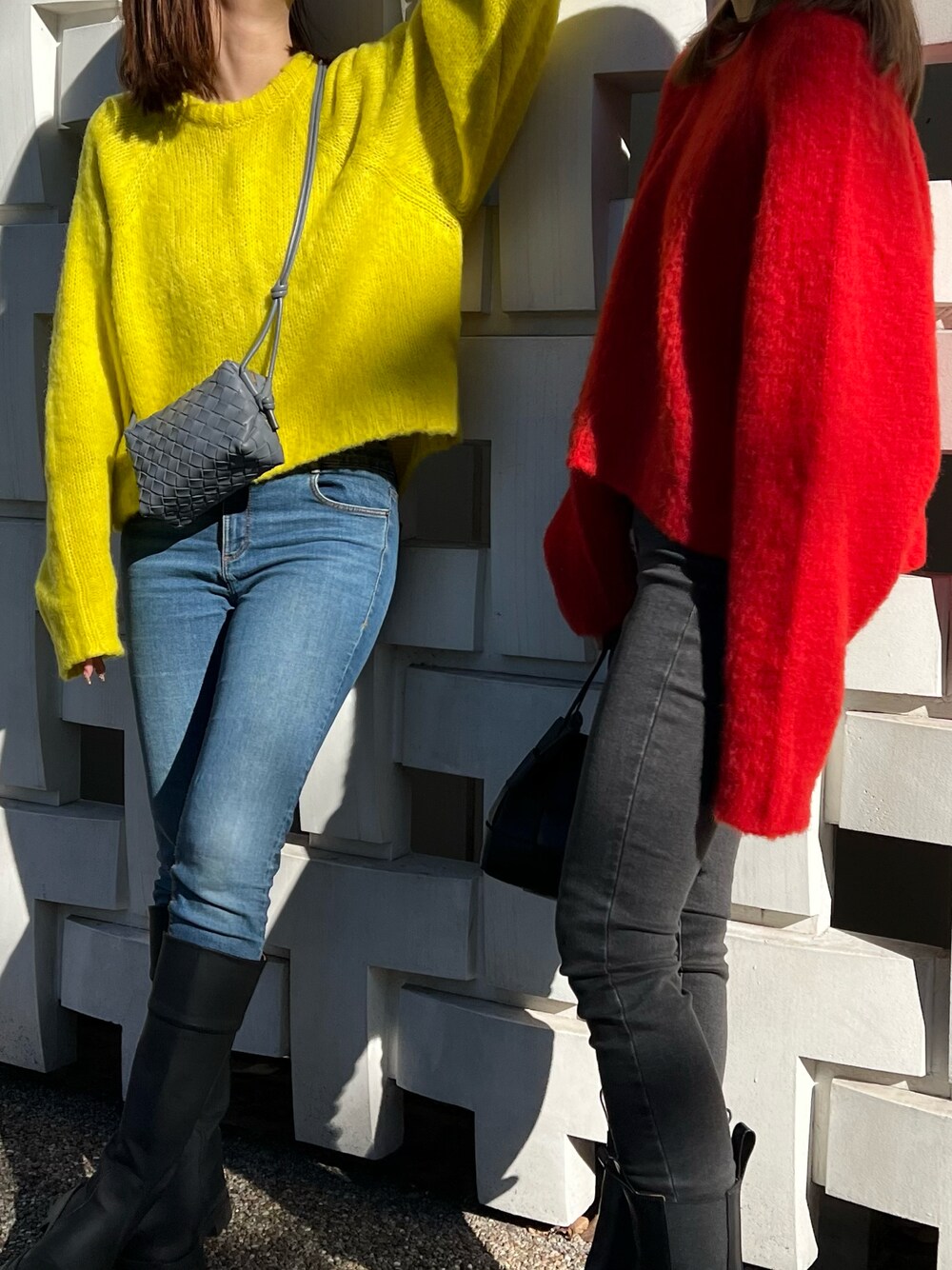 イエロー×レッドニット+デニムのリンクコーデ🍋🍎